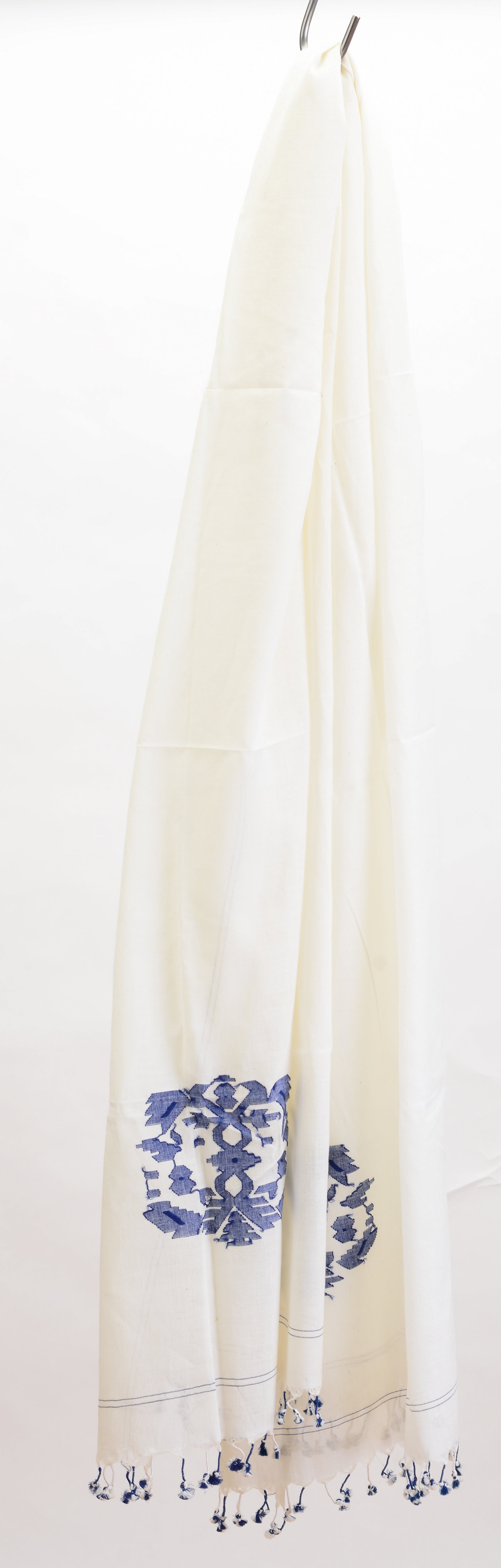 Every thread speaks of care: hand-spun, hand-loomed, and finished with delicate fringes that move with you. Whether wrapped, draped, or tied, it’s a piece that belongs to both heritage and modern ease.